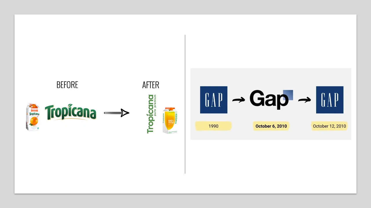 The same story has played out before: Tropicana lost 20% of sales in weeks after a packaging redesign, Gap scrapped its new logo within days after a customer revolt, and Facebook’s shift to “Meta” remains a live case study in equity impact.